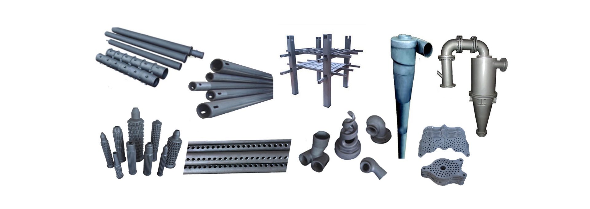 公司產品系列有:方粱、輥棒、噴火套、輻射管、冷風管、熱電偶套管、噴砂嘴、棚板、匣缽、耐磨襯材、耐磨密封件、耐磨耐腐葉輪、脫硫噴嘴等,廣泛應用在陶瓷高溫窯爐、鋼廠淬火爐、礦山物料分級旋流器、大型鍋爐和電廠脫硫除塵設備、煤渣氣力輸送設備、高科技和軍工設備,行業和領域涉及機械、冶金、電子、化工、鋼鐵、陶瓷、造紙、選礦、核工業、國防等。產品暢銷國內,并出口德國、美國、韓國、日本、土耳其、泰國、印尼、越南、印度、西班牙、澳大利亞、中東等國家和地區。